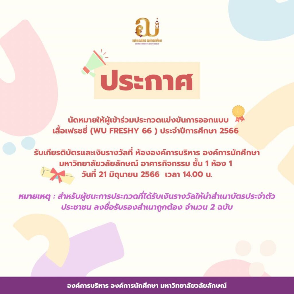 The Walailak University Student Organization Administration would like to emphasize that this process is being conducted to promote student involvement, respect diverse viewpoints, and uphold democratic principles, thereby contributing to the future development of meaningful and inclusive student activities.