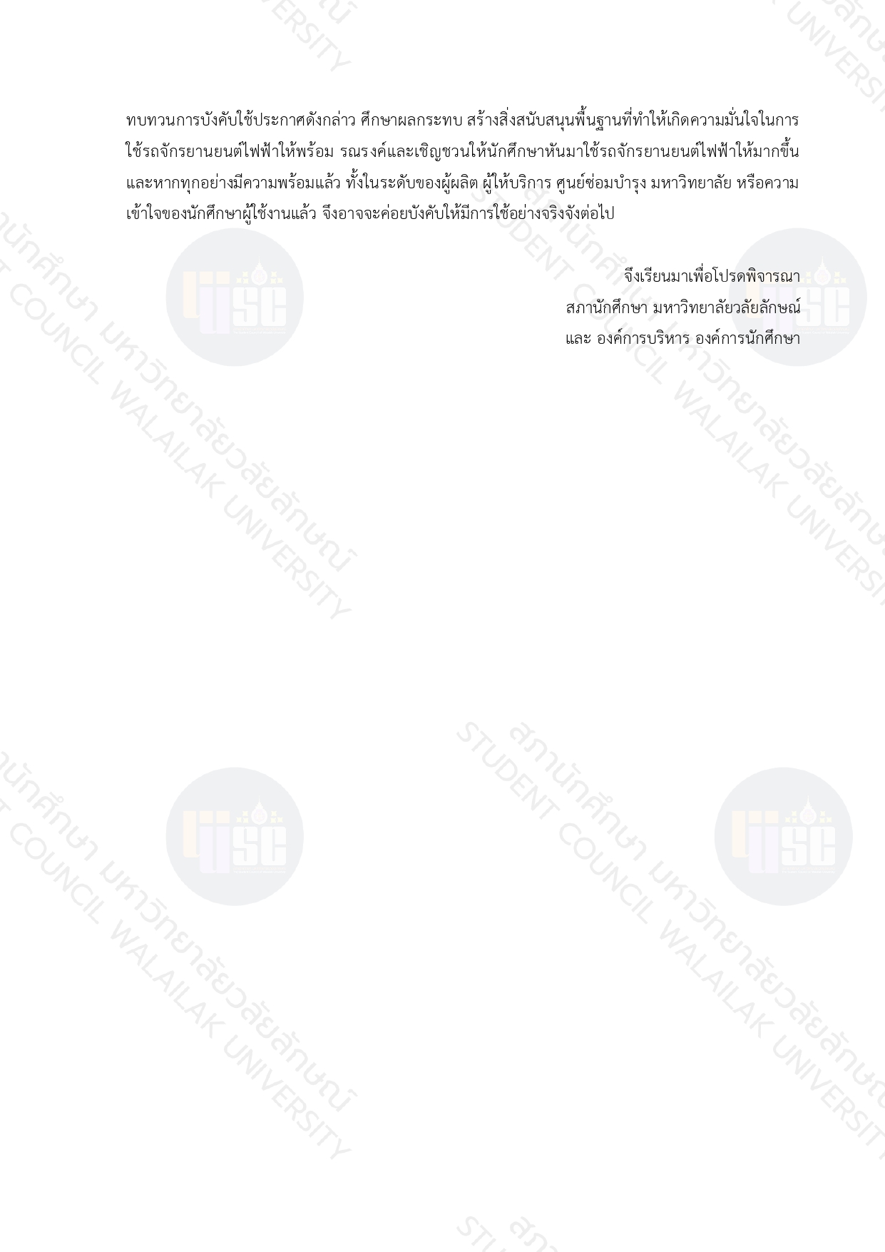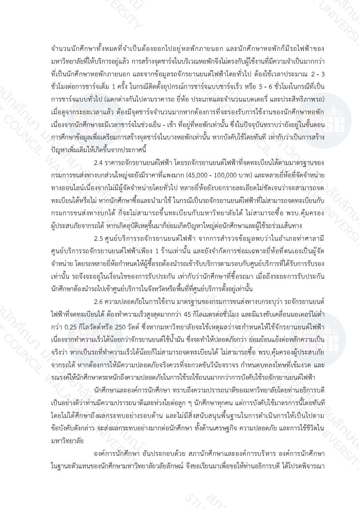 เรื่อง ขอให้มหาวิทยาลัยทบทวนนโยบายให้นักศึกษาชั้นปีที่ 2 ขึ้นไปใช้รถจักรยานยนต์ไฟฟ้าเท่านั้น
